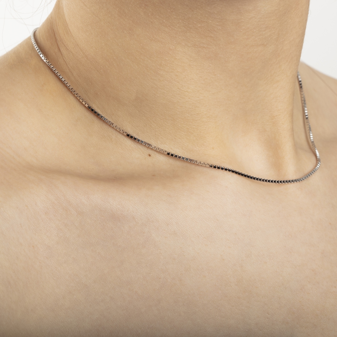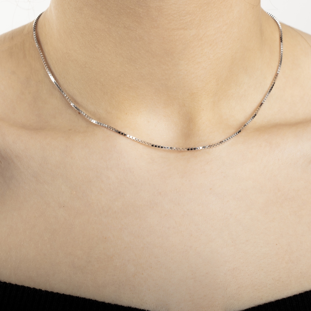 Diese hochwertige 4-kant Venezianerkette aus 750/18 K Weissgold mit einer Breite von 1.3mm und diamantierter Oberfläche ist in 6 Längen zwischen 38 und 55cm erhältlich. Einfach und sicher zu schliessen mit einem Karabinerverschluss. Die feine Kette liegt diskret an und ist vielseitig kombinierbar. Ein stilvolles Accessoire für jeden Anlass.