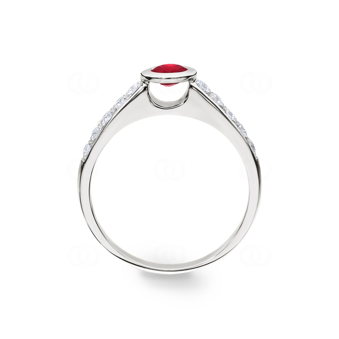 Verlobungsring 750/18 K Weissgold mit Diamanten 0.25 ct H/Si und Rubin 0.35 ct
