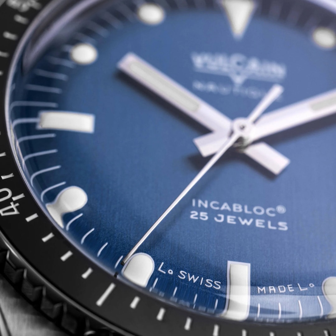 Wenn man an «Vulcain» denkt, kommt einem als erstes «Cricket» in den Sinn. Damit würde man der Marke Unrecht tun, denn Vulcain ist eine Fundgrube für Uhren aus dem Dornröschenschlaf, die eine nostalgische Stimmung verbreiten. Die Skindiver Nautique ist bereit, auf dem Vintage-Markt für Furore zu sorgen. Sie ist von einem 1960 lancierten Vulcain-Modell inspiriert und wird von dem Schweizer Dreizeiger-Automatikkaliber ETA 2824 mit einer Gangreserve von 38 Stunden angetrieben.