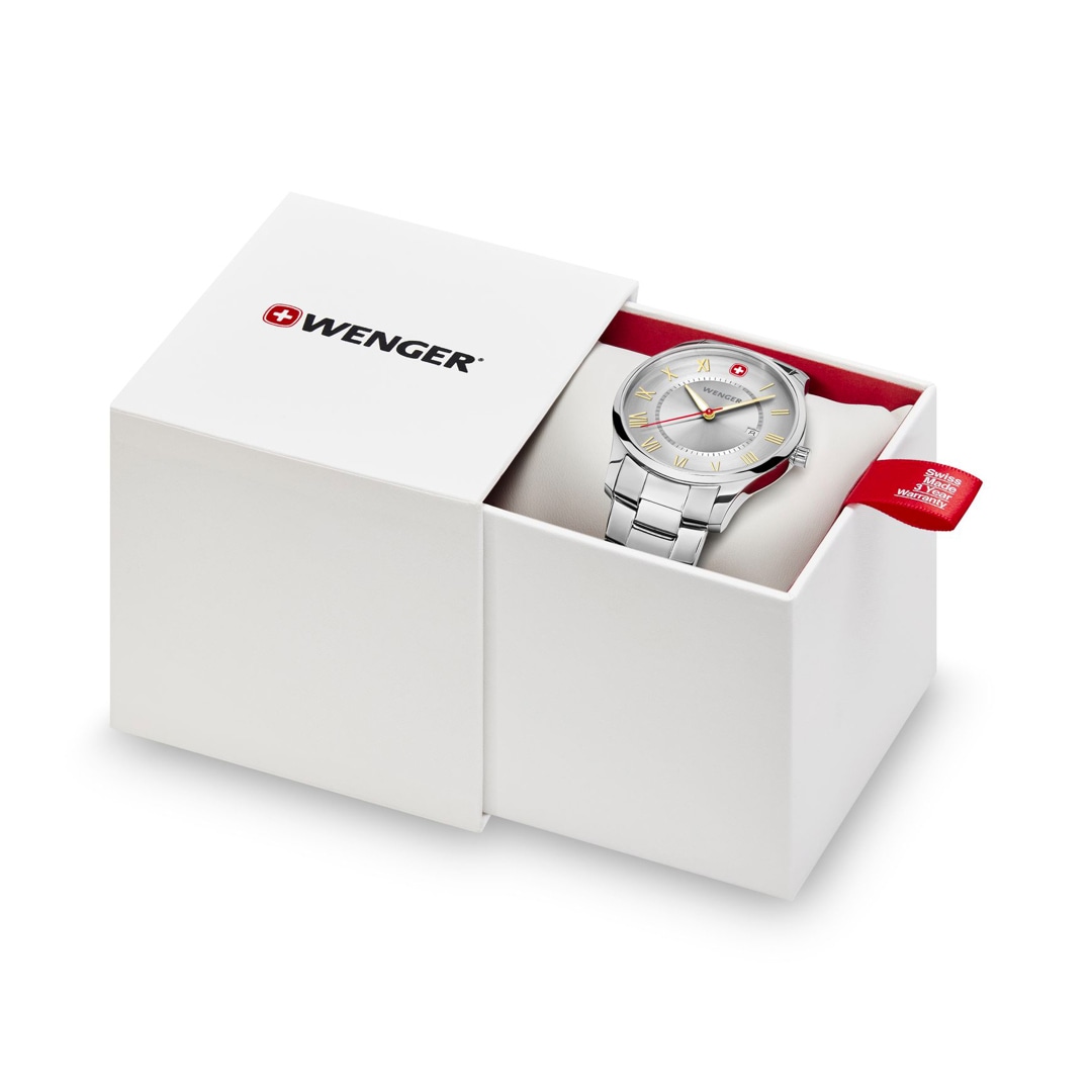 Die Uhren von Wenger sind die neuen Begleiter für den kultivierten Anspruch – praktisch, hochfunktional und zuverlässig. Beste Schweizer Qualität zu angemessenem Preis. Ob im urbanen Look oder im angesagten Vintage Style, ob sportlich oder klassisch elegant – in jedem Design wird die Sorgfalt, die auch aufs kleinste Detail verwandt wird, sicht- und spürbar. Die breite Palette aus wasserfesten Modellen und Chronographen bietet alles, was es für einen aktiven, mobilen Lebensstil braucht. Rigoros verwendet Wenger für seine Uhren ausschliesslich Schweizer Uhrwerke sowie hochwertige Materialien wie Edelstahl und mit Saphir beschichtetes Kristallglas. Ausserdem gewährt Wenger auf jede Uhr eine Drei-Jahres-Garantie.